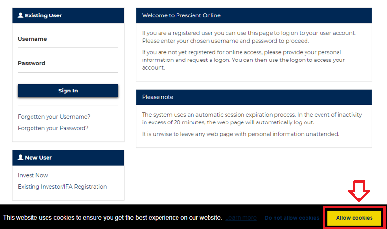 To resolve this you will need to delete any cookies set on the www.prescientonline.co.za